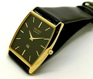 Seiko Quartz Super Slim Men S Gold Plated Excellent Rectangle Black Face Watch Ebay
